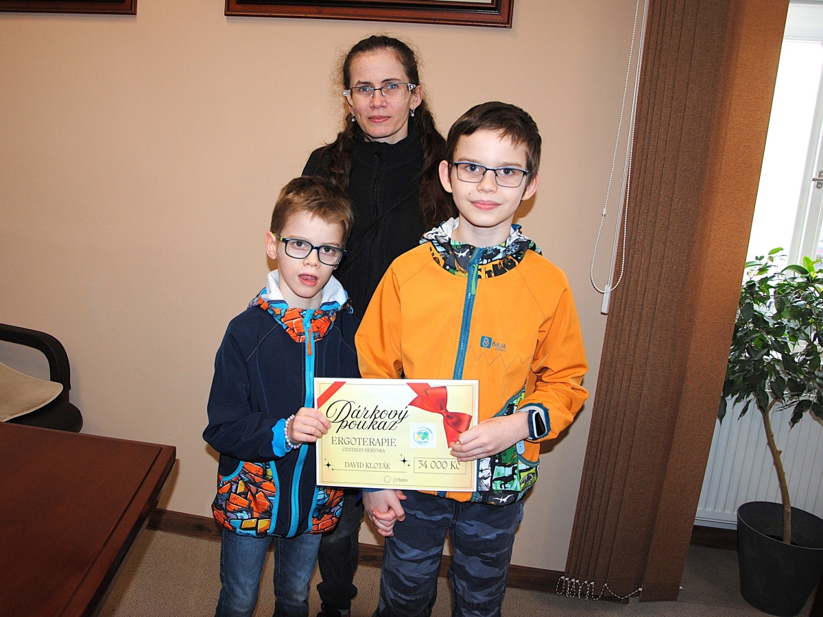 - Čtyřletý Miroslav Svoboda, který se kvůli náhlé nemoci nemohl předání zúčastnit, má na radnici připravený stejný poukaz na ergoterapie, které mu pomohou s neurovývojovou poruchou.