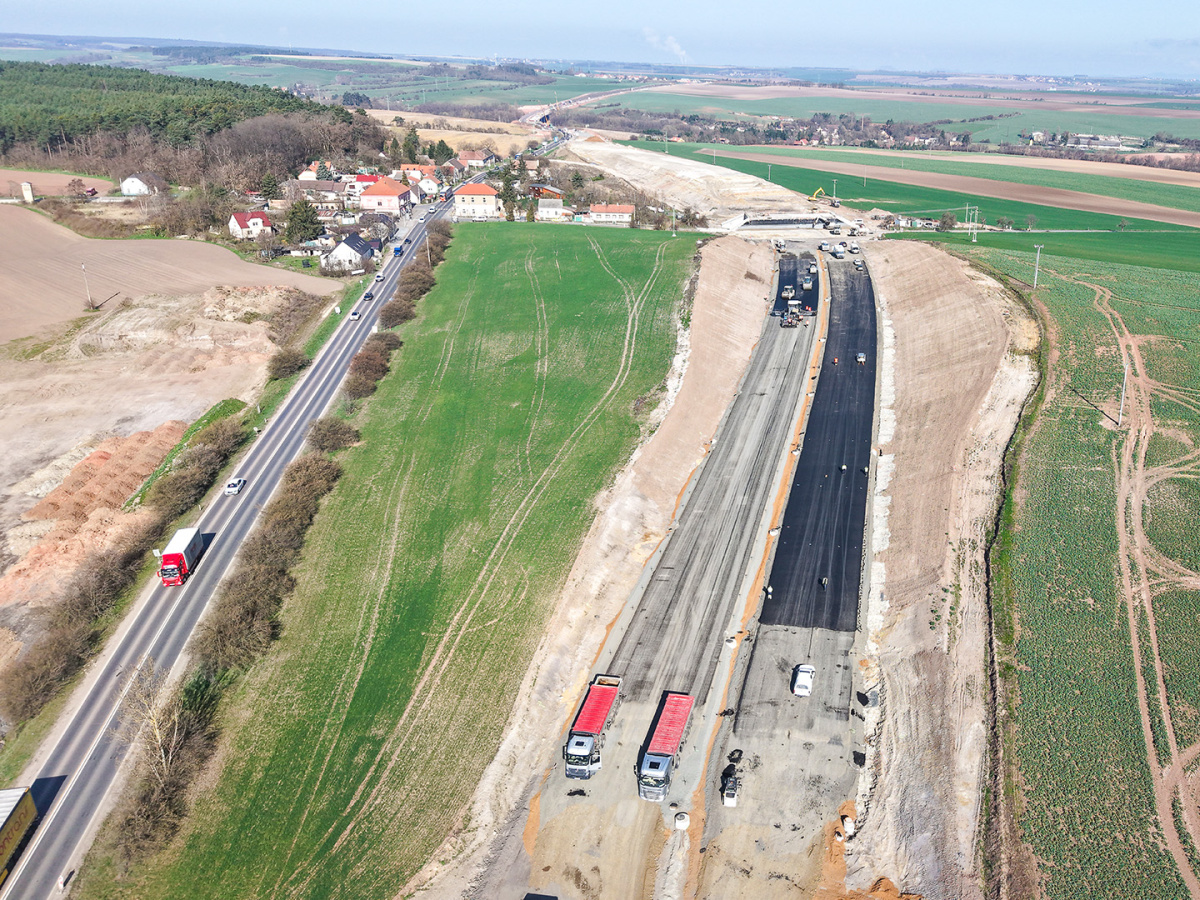 Ředitelství silnic a dálnic zveřejnilo aktuální soubor fotografií, které ukazují čilý stavební ruch na téměř sedmnáctikilometrovém úseku. Práce probíhají na všech třech podúsecích najednou. „Už letos chceme mít na všech třech úsecích hotové jízdní pásy v jednom směru,“ informovalo ŘSD. V terénu denně pracují desítky dělníků, kteří se věnují zemním pracím, betonážím mostů i pokládce asfaltu. Kromě samotné silnice vzniká také devět protihlukových stěn o celkové délce 5,7 kilometru.