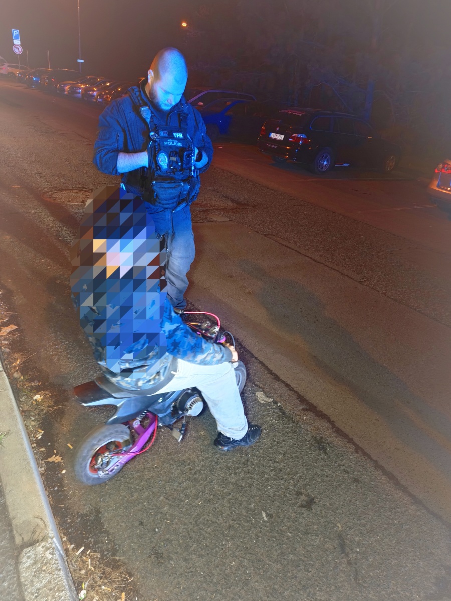 Školák, který se ulicemi řítil pod rouškou tmy, porušil snad všechna myslitelná bezpečnostní pravidla. Jeho stroj nebyl vůbec osvětlen, on sám neměl ochrannou přilbu a hluk motoru se rozléhal celým okolím. Největší šok však přišel ve chvíli, kdy se mladý jezdec pokusil zastavit. Ukázalo se totiž, že stroj má nefunkční brzdy, a chlapec tak zastavil jen s velkými obtížemi na poslední chvíli.