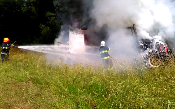 Chomutovsko – Za obcí Úhošťany u Kadaně shořel traktor s lisem na seno. Požár likvidovaly dvě hasičské jednotky. Naštěstí se nikomu nic nestalo.