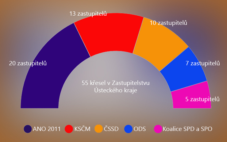 Ústecký kraj – Krajské volby v Ústeckém kraji vyhrálo hnutí ANO 2011. Druzí skončili komunisté, třetí sociální demokraté, na čtvrté pozici je ODS a do krajského zastupitelstva se dostali ještě politici z Koalice SPD a SPO. Vítěz voleb ale ještě nemusí nutně vládnout. Nyní přijdou a řadu povolební vyjednávání o koalici.