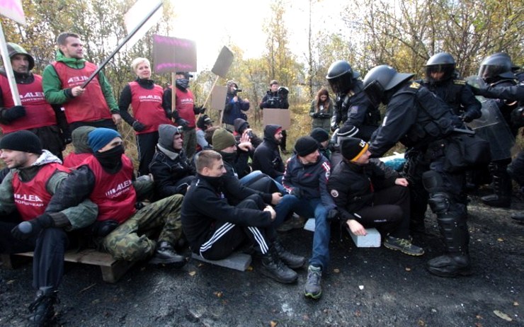 Policisté zasahují proti demonstrantům u Mníšku. Foto: Jan Vraný