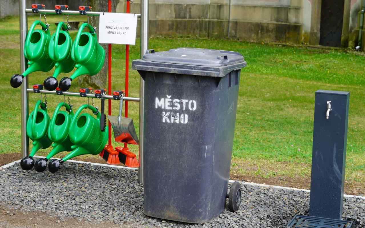 Klášterec nad Ohří - Návštěvníci kláštereckého hřbitova mají nově na dvou místech možnost vypůjčit si plastovou konev, koště, lopatku nebo smetáček pro potřeby úklidu hrobových míst. K potřebnému úklidovému prostředku se dostanou po vložení 10Kč mince.