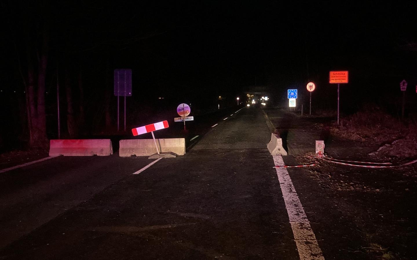 Hřensko – Někteří řidiči nerespektují uzavírku silnice I/62 mezi Hřenskem a státní hranicí s Německem. V noci tu někdo odtáhl betonový zátaras.