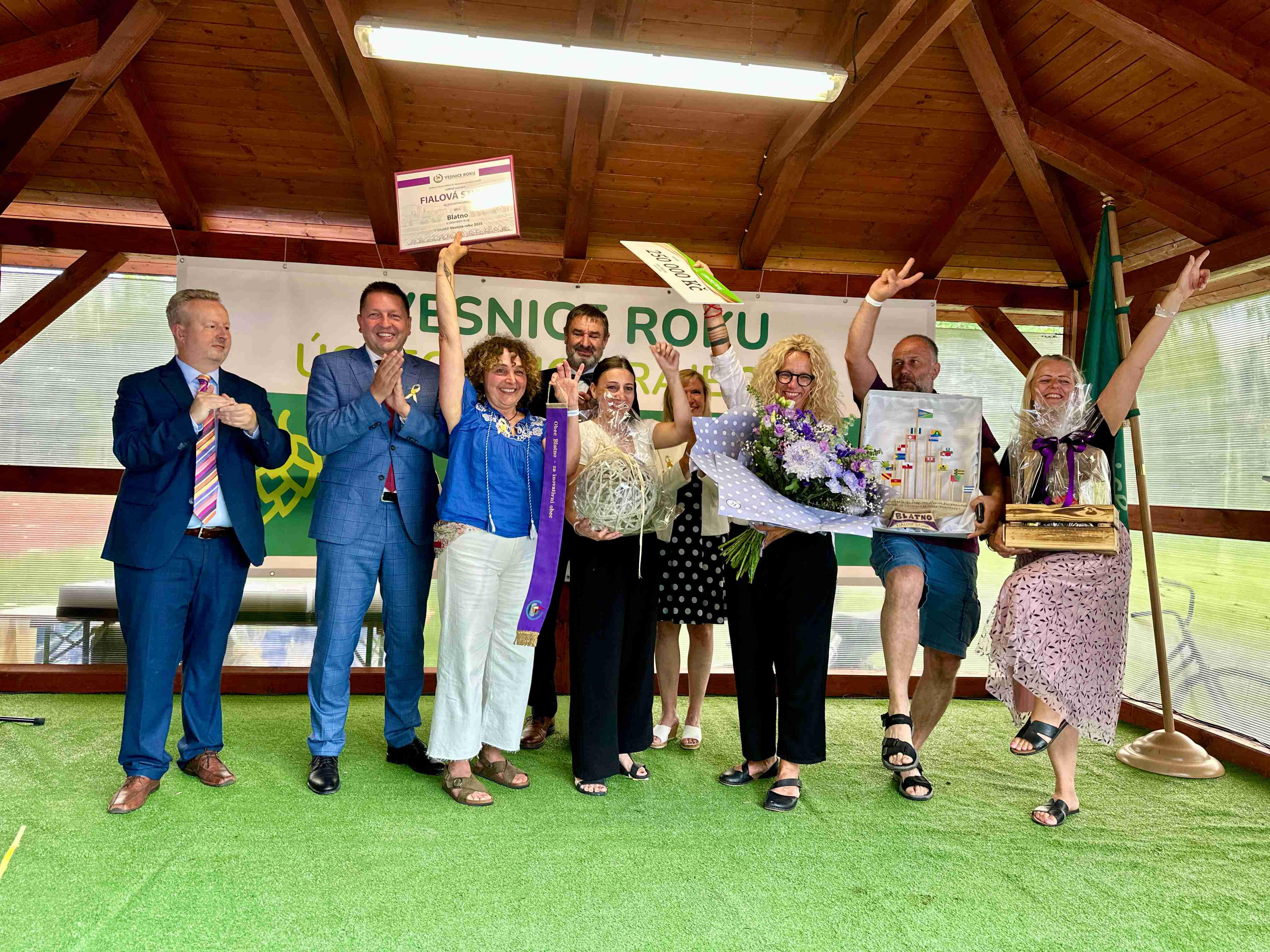 Radovesice/Ústecký kraj - O víkendu proběhla v obci Radovesice krajská slavnost v rámci soutěže Vesnice roku 2025. Vrcholem slavnostního dne bylo předání zlaté stuhy právě Radovesicím, které se staly vítězem krajského kola a budou reprezentovat Ústecký kraj v celostátním kole. Ocenění si převzaly i další obce za své výjimečné aktivity a projekty. Slavnostní atmosféru podtrhla účast zástupců vyhlašovatelů soutěže, ministerstev, krajské samosprávy, odborné poroty i oceněných obcí. Za Ústecký kraj se slavnostního předání ocenění zúčastnil hejtman Richard Brabec, náměstek Tomáš Kirbs a předseda krajského výboru pro zemědělství a rozvoj venkova Zdeněk Plecitý.