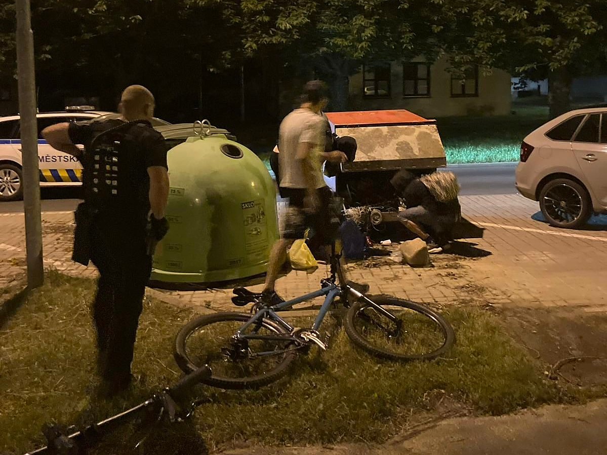 Chomutov – Včasný zásah strážníků Městské policie Chomutov v ranních hodinách zabránil dalšímu poškozování majetku v ulici Cihlářská. Hlídka při běžné hlídkové činnosti zahlédla dvojici mladíků, kteří právě převraceli kontejner na elektroodpad.