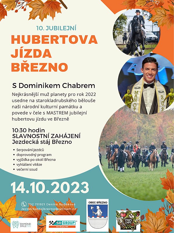 Patronem Hubertovy jízdy bude nejkrásnější muž planety pro rok 2022 Dominik Chabr, který usedne na starokladrubského bělouše a povede v čele s Mastrem tuto jubilejní jízdu.