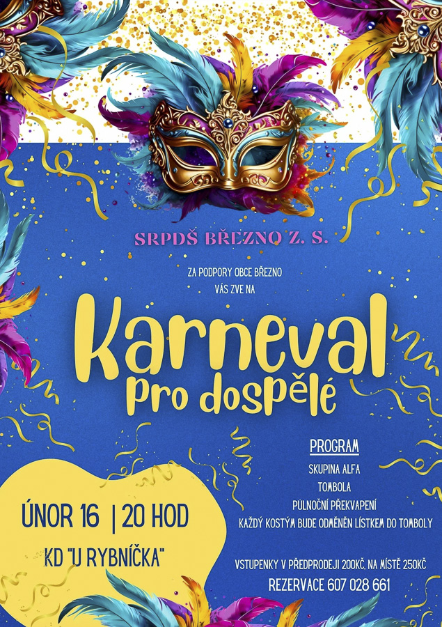 Březno u Chomutova - SRPDŠ Březno zve veřejnost 16. února od 20 hodin na Karneval pro dospělé do kulturního domu „U Rybníčka“.