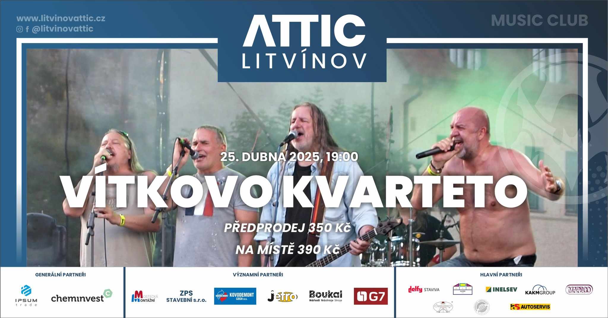 Litvínov – Stálice české bigbítové scény se chystá na sever Čech. Vítkovo kvarteto v rámci Tour Vítkáčů tento pátek vystoupí v litvínovském hudebním klubu Attic. Přinášíme pro vás soutěž, díky které můžete získat dvě vstupenky na akci, při níž uslyšíte skladby, které se zapsaly do historie české hudby a dodnes rezonují v srdcích fanoušků.