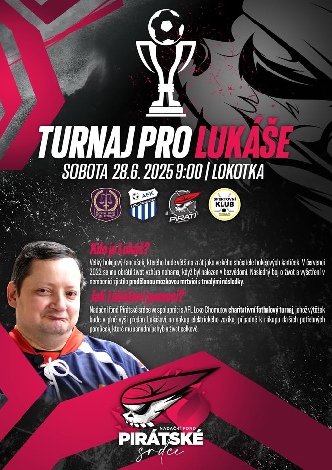 Chomutov – Nadační fond Pirátské srdce ve spolupráci s AFK LoKo Chomutov pořádá v sobotu 28. června od 9 hodin Charitativní fotbalový turnaj, který letos ponese výjimečné poslání – pomoci Lukášovi Andrlemu.