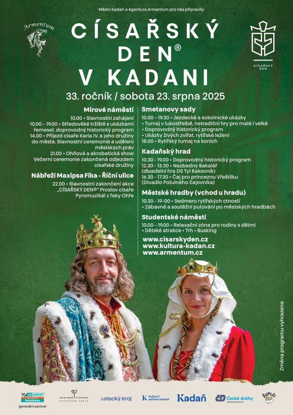 Kadaň – Závěr srpna v Kadani už více než tři desetiletí patří největší kulturní události města – Císařskému dni. Tuto sobotu se uskuteční již 33. ročník této výjimečné historické slavnosti, která návštěvníky zavede zpět do časů panování císaře římského a krále českého Karla IV.