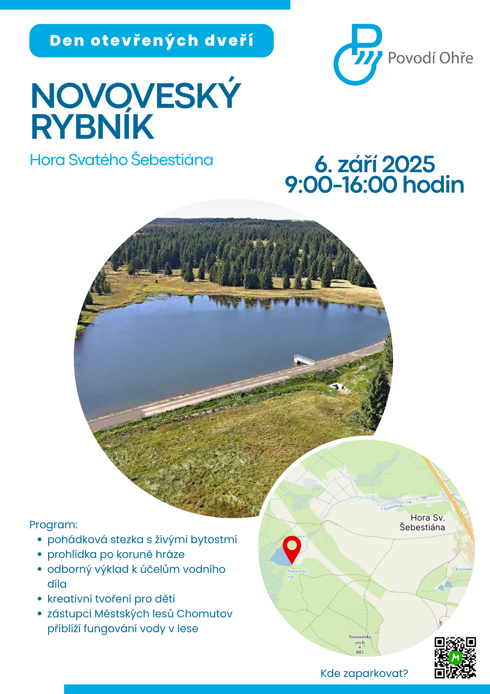 Chomutovsko – U Hory Svatého Šebestiána se v sobotu 6. září uskuteční den otevřených dveří, kde od 9 do 16 hodin pracovníci Povodí Ohře veřejnosti představí Novoveský rybník.