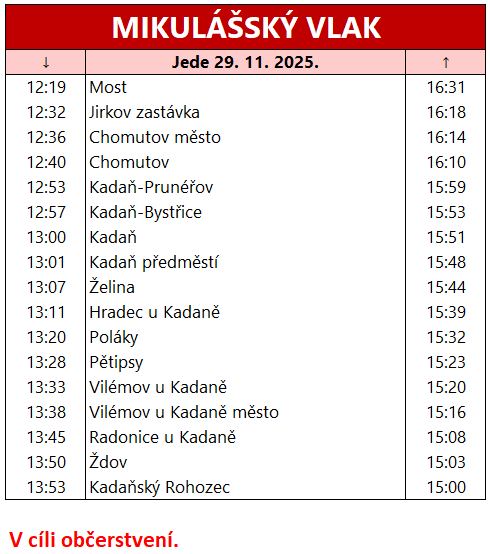 Chomutov – Hledáte program na nadcházející sobotu? Máme pro vás tip na výlet, který potěší malé i velké. Doupovská dráha vypravuje tradiční Mikulášský vlak, který vás zaveze z průmyslového Mostu přes Chomutov a Kadaň až do malebného podhůří Doupovských hor – do Kadaňského Rohozce, kterému se s nadsázkou přezdívá „konec světa“.