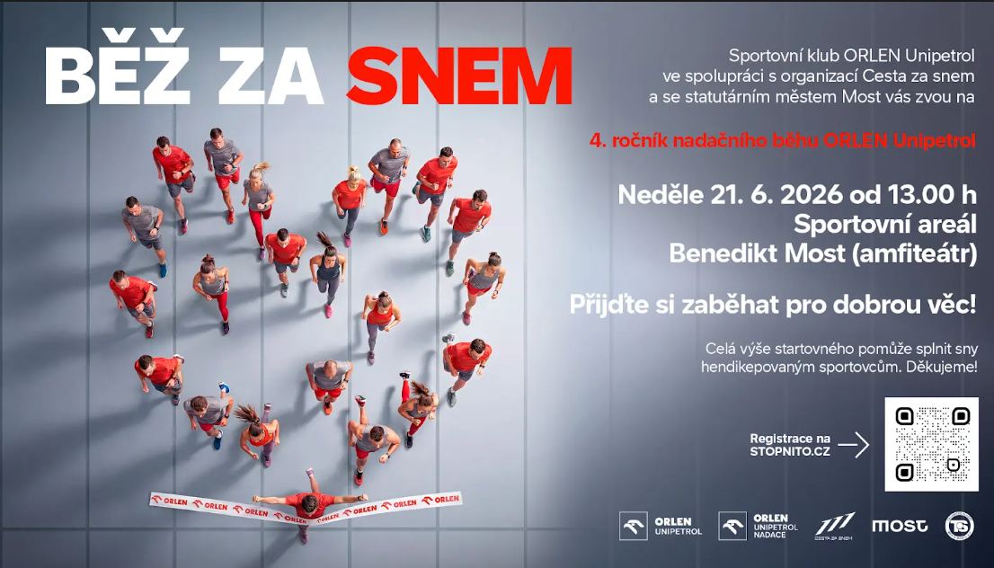 Most – Sportovní areál Benedikt v Mostě ožije v neděli 21. června 2026 dalším ročníkem oblíbeného nadačního běhu ORLEN Unipetrol Běž za snem. Tradiční sportovně-charitativní akce propojí pohyb s podporou dobré věci a nabídne program pro běžce, rodiny s dětmi i návštěvníky, kteří si chtějí užít aktivní den. Výtěžek ze startovného poputuje na podporu handicapovaných sportovců. Nadace ORLEN Unipetrol pak vybranou částku navýší o 35 tisíc korun.
