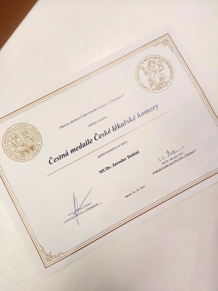 Kadaň – Zástupci okresního sdružení České lékařské komory v Chomutově předali před týdnem, v úterý 24. října, pamětní medaili významné kadaňské lékařské osobnosti. Ocenění, které se každoročně uděluje lékařům za mimořádné úspěchy v medicínských oborech, získal MUDr. Jaroslav Dobiáš za celoživotní oddanou službu dětem.