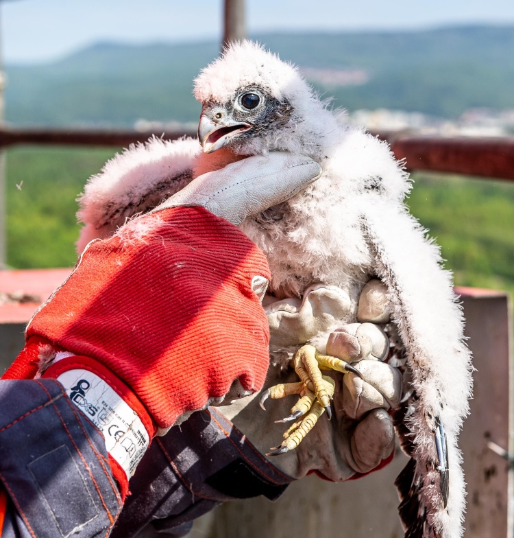 Mládě sokola při kroužkování v předchozích letech. Foto: ALKA Wildlife