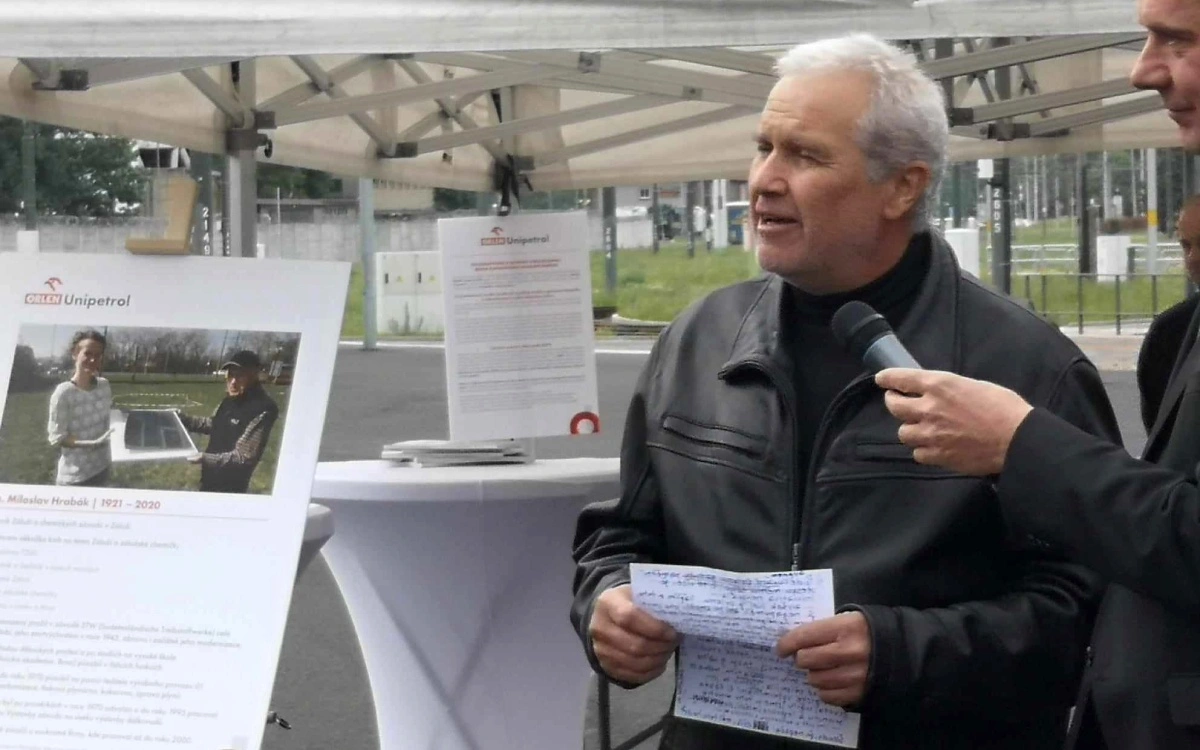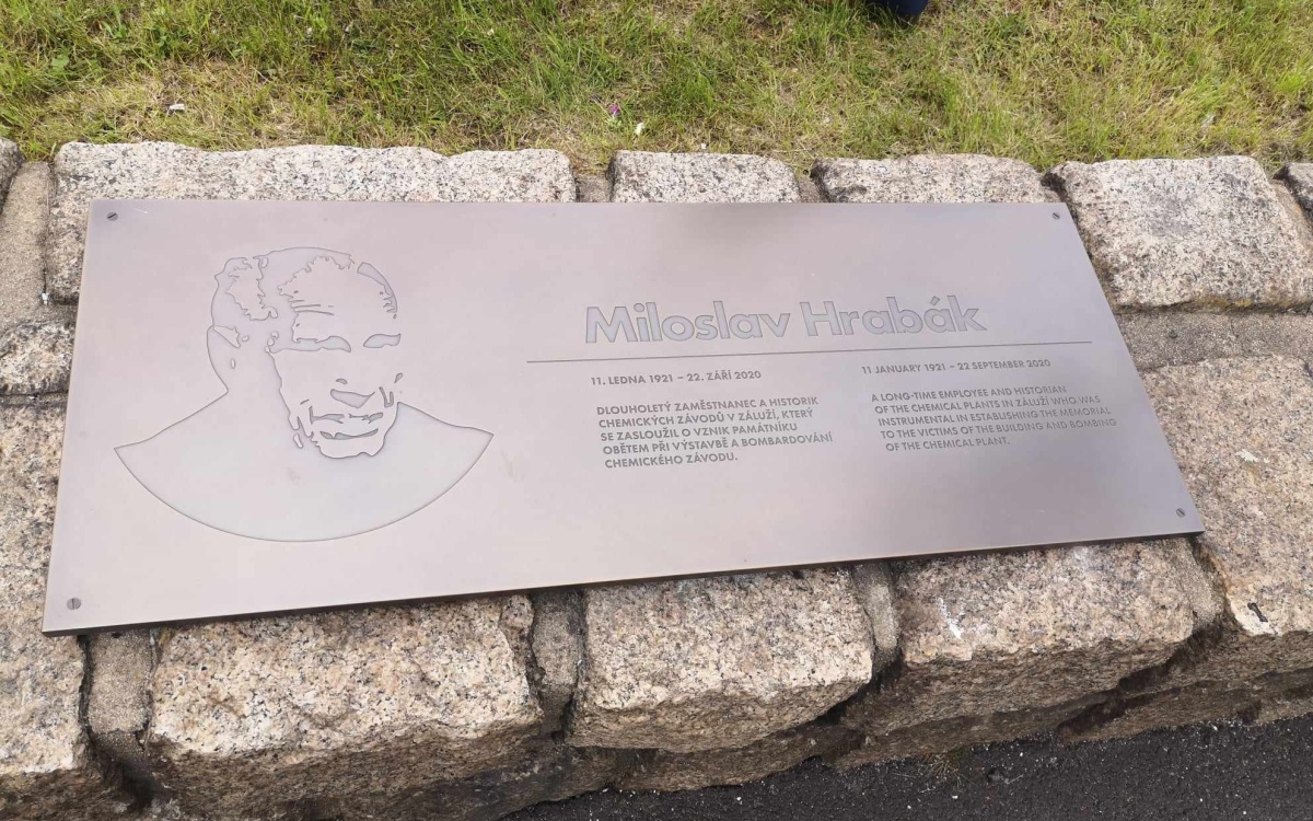 Litvínov-Záluží – Na prostranství před hlavní branou číslo 1 u vjezdu do areálu chemparku byla v pondělí dopoledne slavnostně odhalena pamětní deska připomínající Miloslava Hrabáka. Muže, který byl u počátku budování chemparku, zažil v něm nálety spojenců a pracoval zde přes 50 let. Zájem o chemické závody nepominul ani po jeho profesním odchodu. Ve věku 80 let začal sepisovat své paměti a na základě bádání v archivech vydal hned několik publikací, mapujících historii jak místní, tak podnikovou.