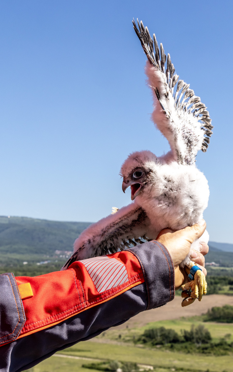 Každý rok ornitolog Václav Beran z organizace ALKA Wildlife nasazuje mláďatům identifikační kroužky, díky kterým je možné sledovat vývoj populace těchto vzácných dravců. Foto: ORLEN Unipetrol