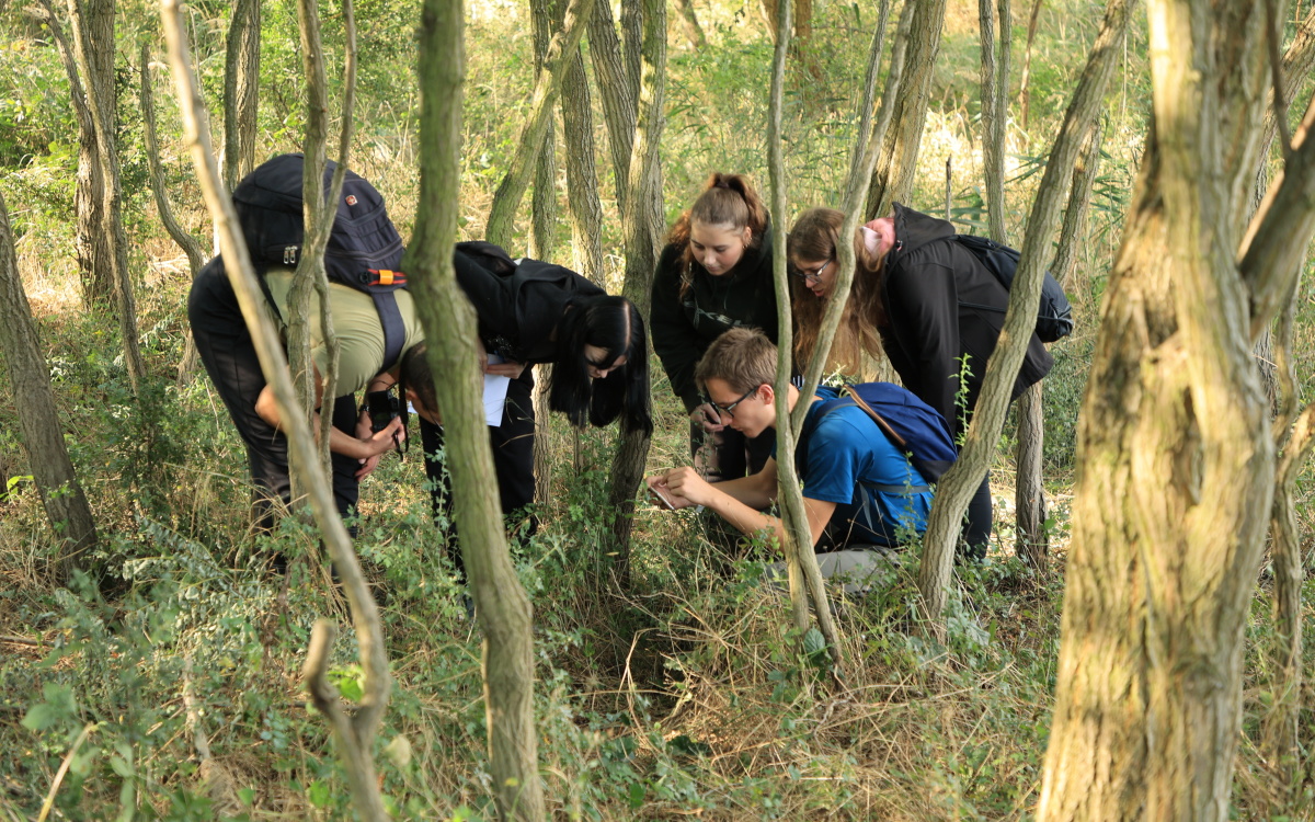 Vybaveni mapou i chytrými technologiemi se studenti 2. ročníku Scholy Humanitas pustili do prozkoumávání terénu. Foto: Jan Pimper