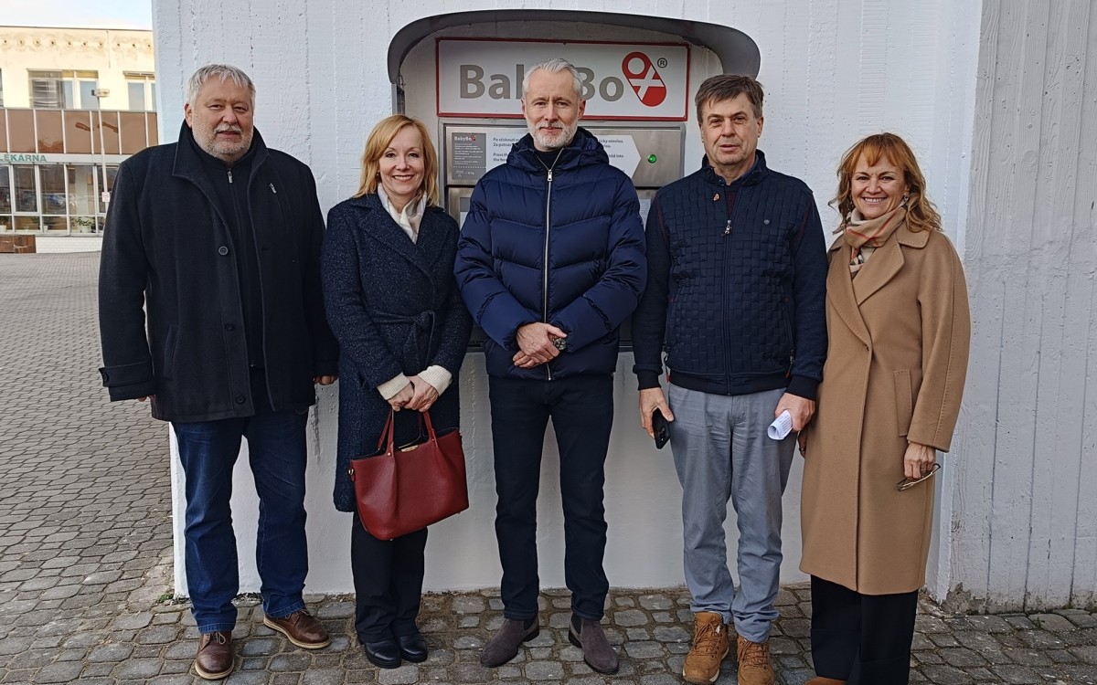 Zleva: starosta Radek Löwy, ředitelka Nadace AGROFERT Zuzana Isabella Tornikidis, ředitel nemocnice Vladimír Kestřánek, výrobce babyboxu Zdeněk Juřica a předsedkyně spolku Dobrý skutek Bára Hrubá. Foto: Krajská zdravotní