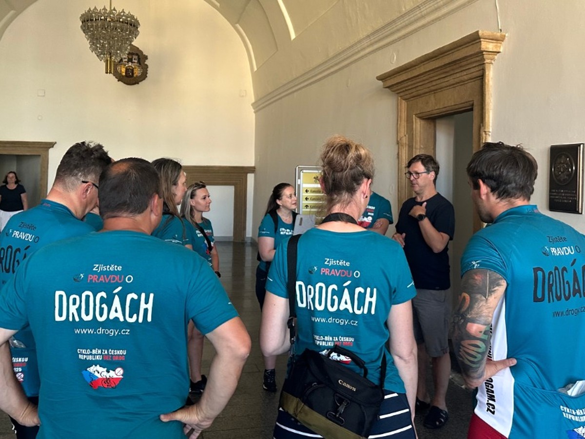 Jedním ze zastavení na trase byl také Chomutov, kde účastníky přijal 1. náměstek primátora Milan Märc. Přivítal tým na radnici, provedl je historickou budovou a vyslechl si prezentaci projektu, jehož cílem je předcházet užívání drog mezi dětmi a mládeží prostřednictvím pravdivých a věcných informací.