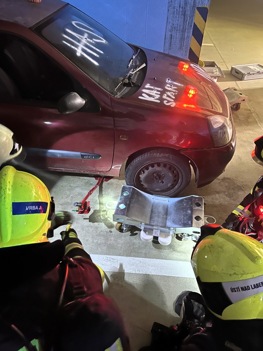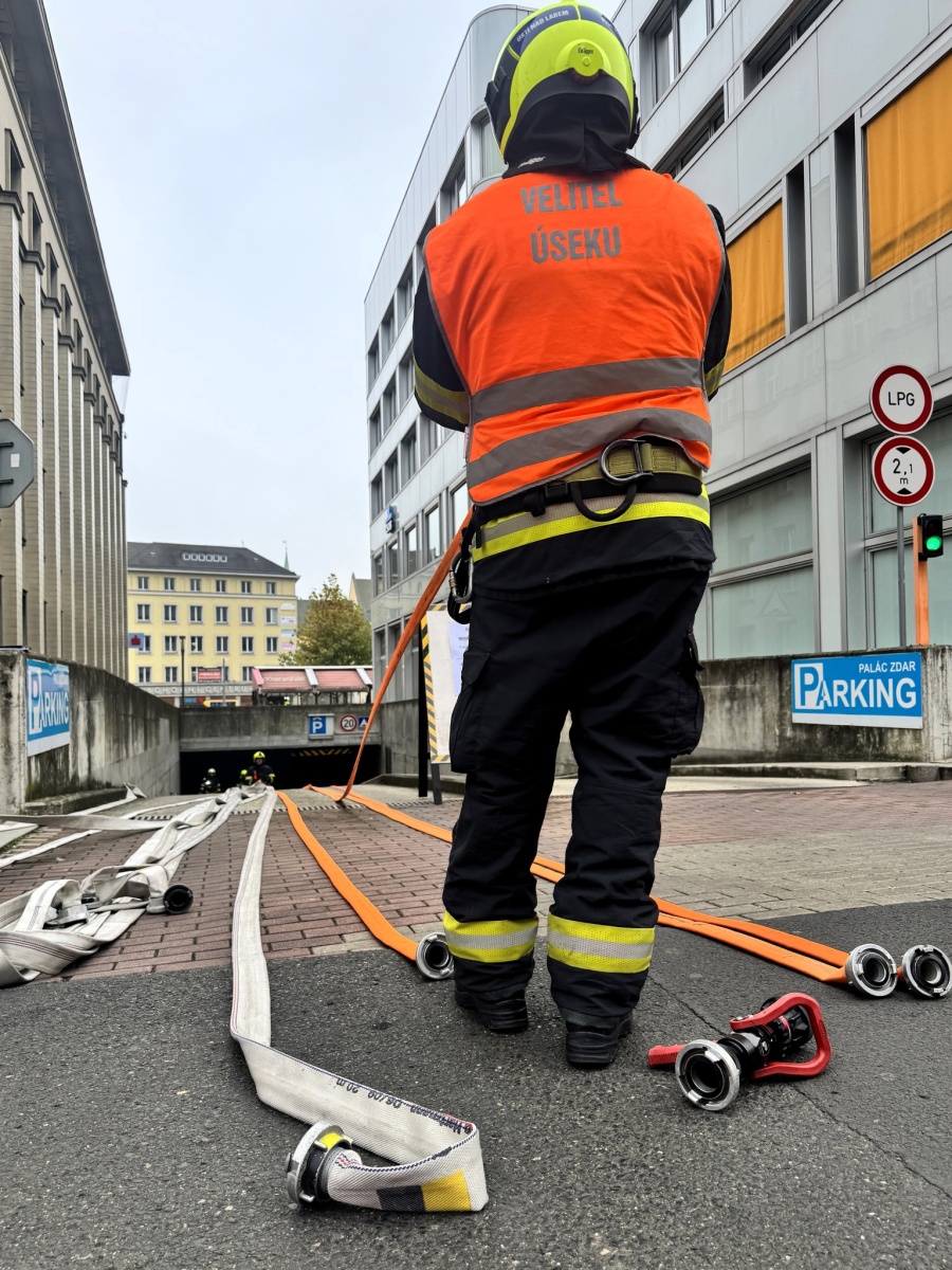 Ústí nad Labem – Zásah u požáru elektromobilu v uzavřeném prostoru je pro hasiče specifickou výzvou. Přesně takový scénář si během taktického cvičení vyzkoušely složky IZS v centru Ústí nad Labem. Situace byla o to komplikovanější, že auto začalo simulovaně hořet tři patra pod zemí v garážích Paláce Zdar na Mírovém náměstí a při požáru se navíc zranilo několik osob.