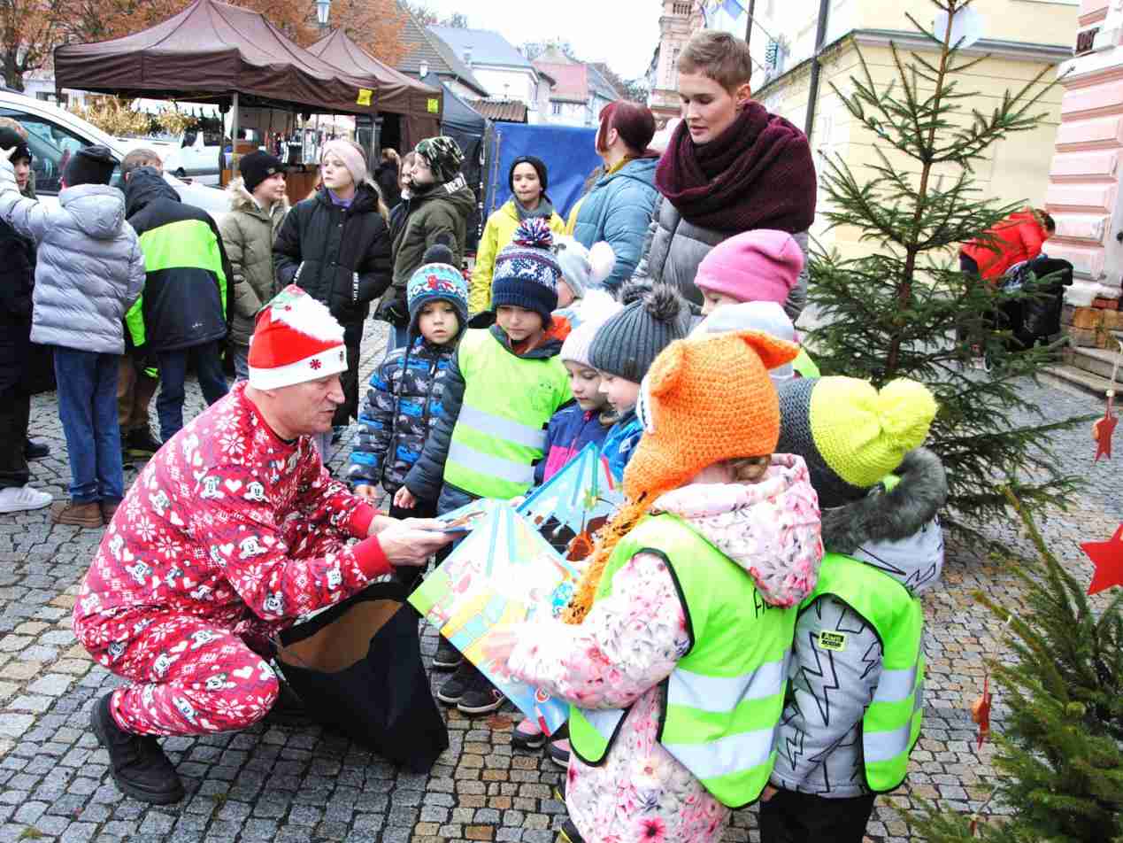 Předávali jim je starosta Jiří Šruma a místostarosta Josef Šebek (ve vánočním úboru). Po celou dobu děti rozveselovali Opička Jiřinka a Sloník Karlík a také Mikuláš v doprovodu anděla a čerta, které „obstaral“ Dům dětí a mládeže Paraplíčko.