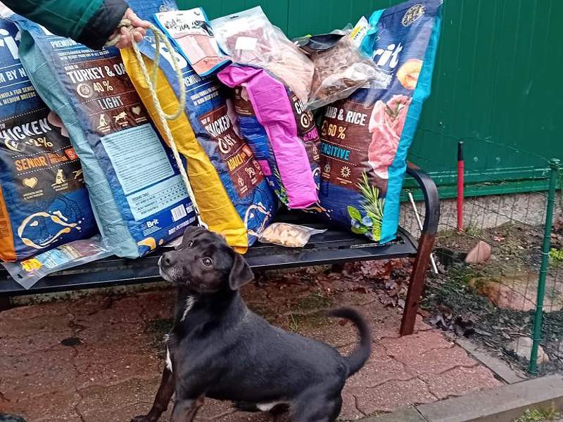 Za tuto částku nakoupili krmivo značky Brit (pro větší plemena, menší plemena a pro starší psy) a ještě drobné psí pamlsky. Vše osobně předali řediteli útulku Marku Halounkovi.