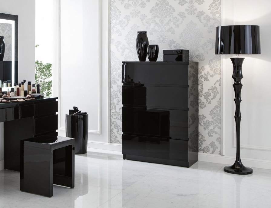 V kolekcích Belini je kladen velký důraz na funkčnost a promyšlené využití prostoru. Praktické zásuvky, police a úložné moduly umožňují pohodlně uspořádat oblečení i další věci. Zajímavým prvkem může být například cerna komoda, která kromě úložného prostoru přináší do interiéru také výrazný designový akcent.