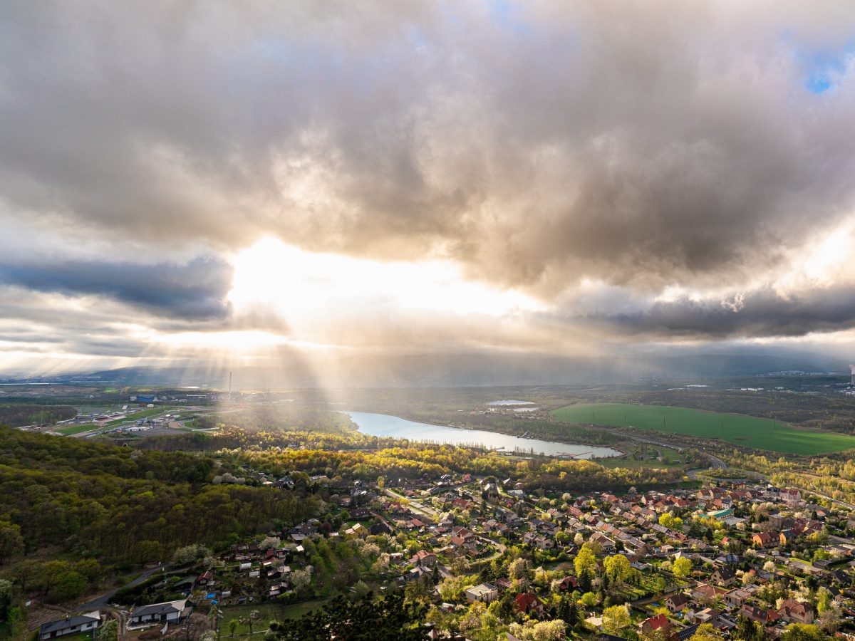Most, Ústecký kraj – Včerejší proměnlivé počasí, které se přehnalo přes celý Ústecký kraj, připravilo obyvatelům severních Čech nevídanou podívanou. Zatímco na mnoha místech se střídal déšť s bouřkovými mračny, milovníci krajinné fotografie měli žně. Jedním z těch, kteří dokázali zachytit syrovou krásu našeho regionu, je fotograf Rastislav Michalko. Jeho aktuální snímek z ochozů hradu Hněvín, na kterém sluneční paprsky jako reflektor osvětlují vodní nádrž Matyldu uprostřed dramatických mračen, se okamžitě stal hitem mezi patrioty z celého kraje.